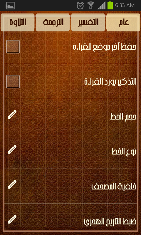 - widget تعرض التاريخ الهجري وآية قرآنية تتغير بشكل يومي وتكون الآية من سورة الكهف يوم الجمعة للتذكير بقراءة السورة.