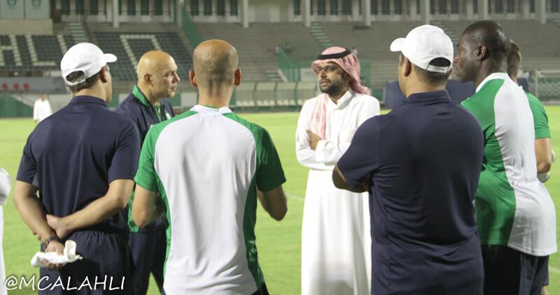تيسير الجاسم وعبدالله المعيوف يتقدمان لاعبي الأهلي في مران اليوم ، والمطيري يكتفي بالدوران حول المضمار