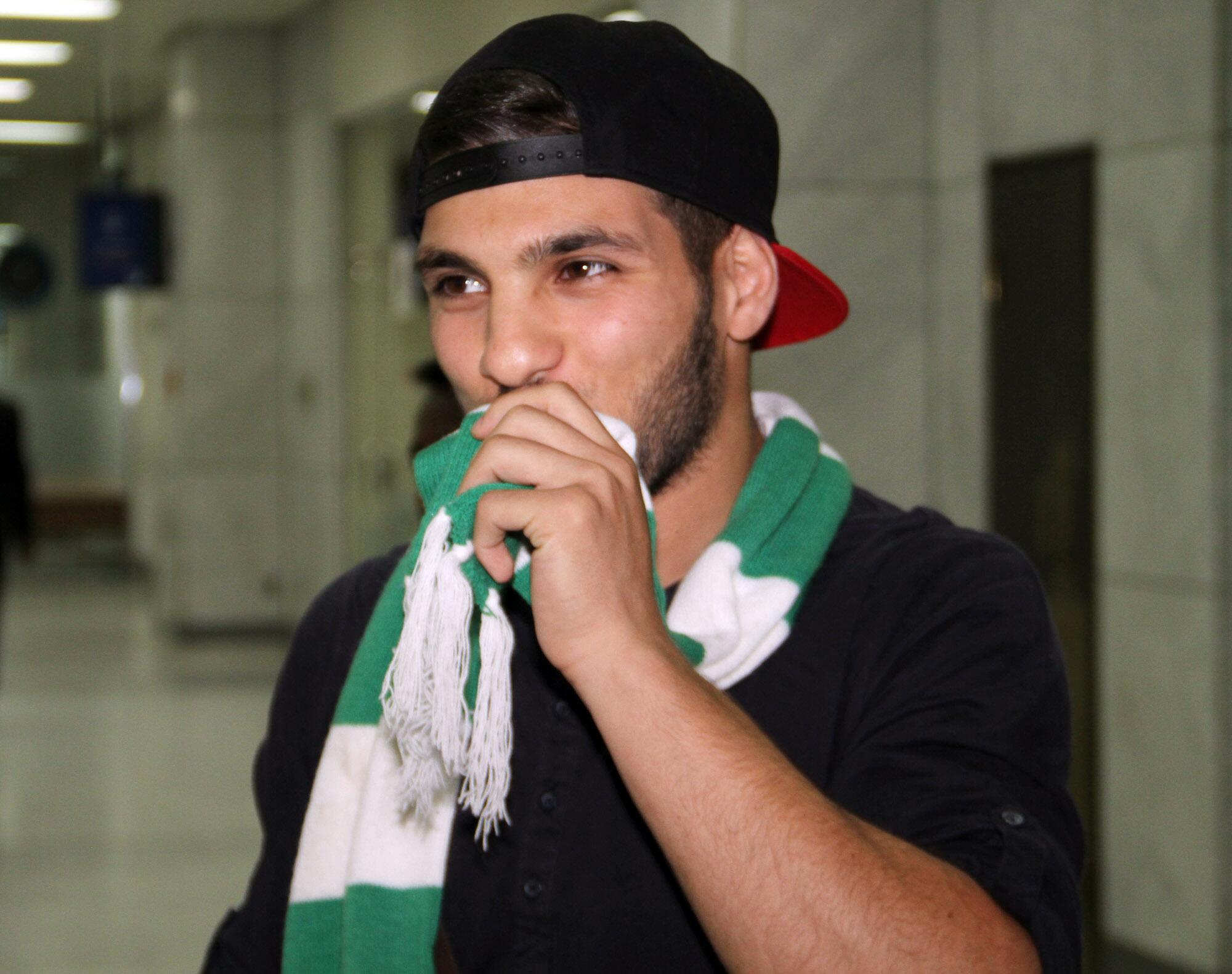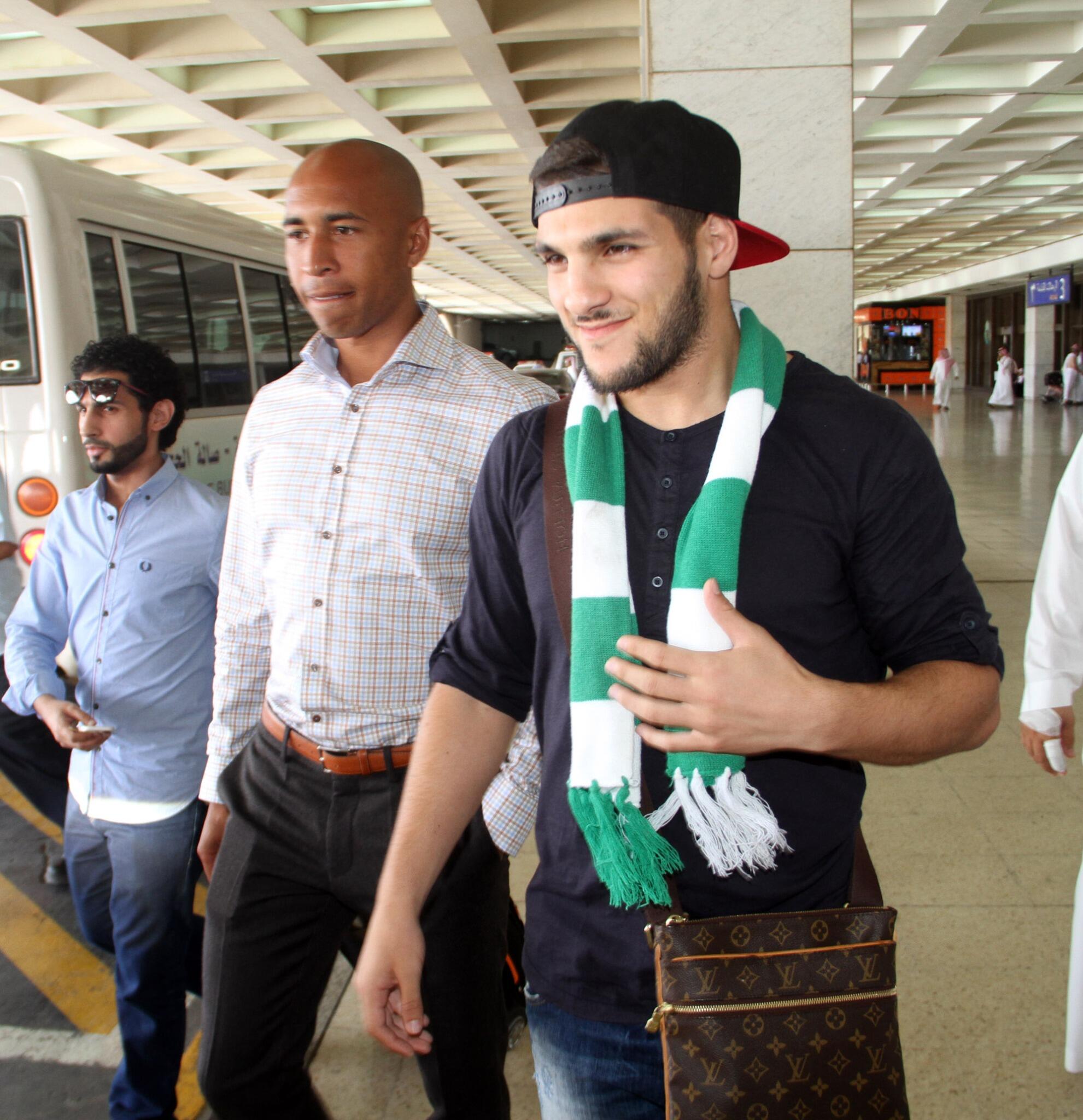 اللاعب مصطفى الكبير برفقة وكيل أعماله لحظة وصولهم إلى مطار الملك عبدالعزيز الدولي بجدة