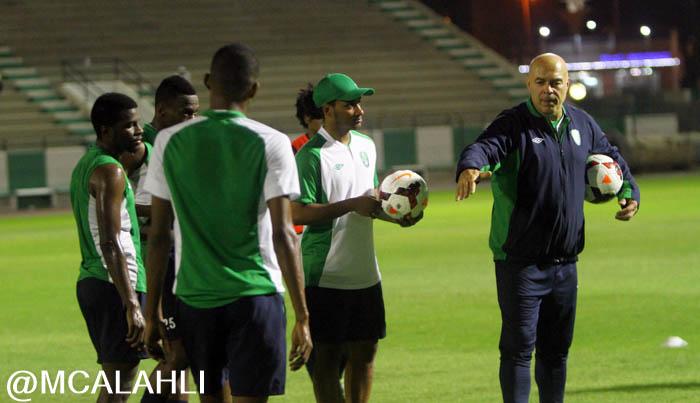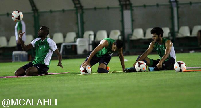 وكان الفريق قد أجرى تدريباته مساء اليوم على ملعبه عقب لقاء الأمس أمام حطين والذي كسبه الأهلي بثلاثة أهداف لهدف ، واكتفى الجهاز الفني بقيادة المدرب السويسري كريستيان جروس ببعض التدريبات اللياقية الخفيفة وتفكيك العضلات قبل أن يتم الإيعاز للاعبين بأداء تدريبات فنية بالكرة غاب عنها المحترف الهولندي مصطفى الكبير لارتفاع بسيط في درجة الحرارة .