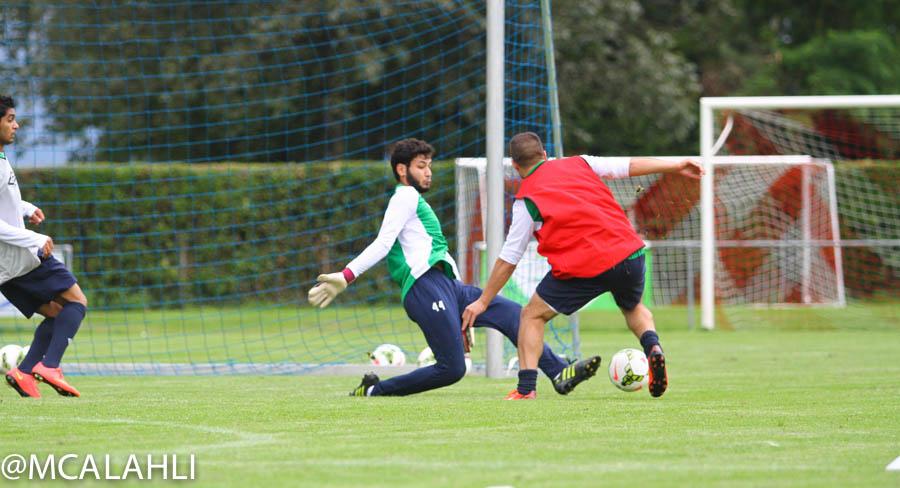 وعلى الصعيد الميداني كان المدرب السويسري كريستيان جروس قد اكتفى بإقامة حصة تدريبية وحيدة لهذا اليوم انطلقت عند الثانية ظهراً ( بتوقيت مدينة لوزان ) وشهدت مشاركة الثنائي كامل الموسى وسعيد المولد عقب شفائهما من الإصابة التي حرمتهما من المشاركة في مران الأمس .