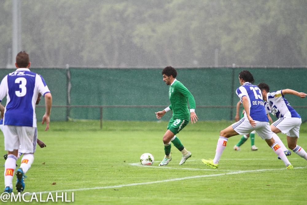 تمكن الفريق الكروي الأول بالنادي الأهلي من كسب اولى مبارياته الودية في معسكره الإعدادي الخارجي بعد ان تغلب على فريق لوزان السويسري بهدف دون مقابل احرزه مصطفى بصاص في الدقيقة الخامسة عشر من الشوط الاول ولعب الأهلي بتشكيل أساسي مكون من عبدالله المعيوف ، منصور الحربي ، أسامه هوساوي ، سعيد المولد ، معتز هوساوي رباعي خط الوسط تيسير الجاسم ، وليد باخشوين ، مصطفى بصاص ، محمد أمان وفي المقدمة كلا من سلطان السوادي و اسماعيل مغربي ،