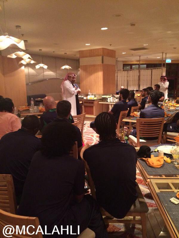 حيث التقى سموه باﻷجهزة اﻹدارية والفنية والطبية واللاعبين وتناول معهم طعام العشاء