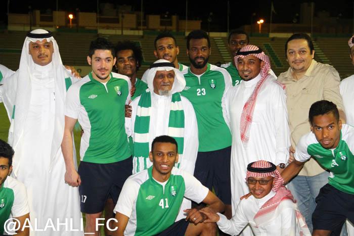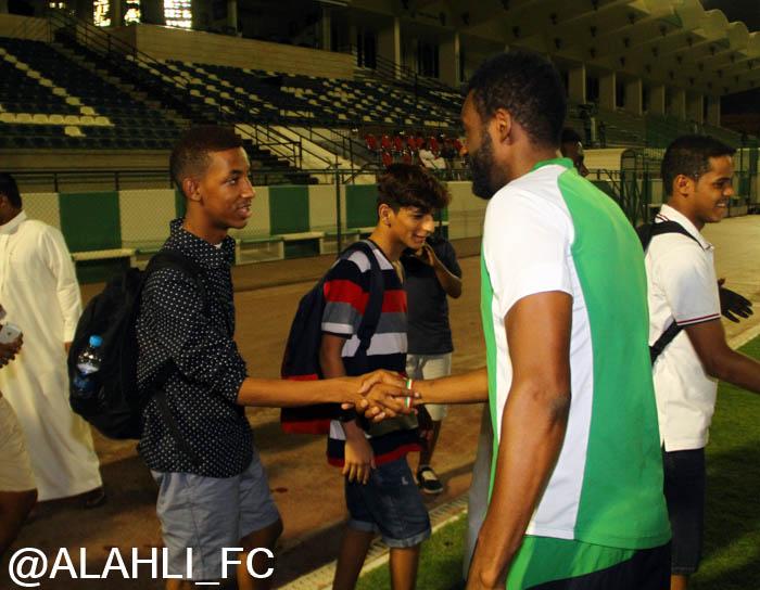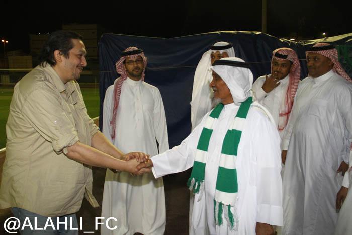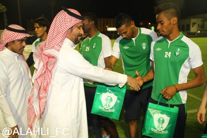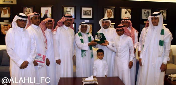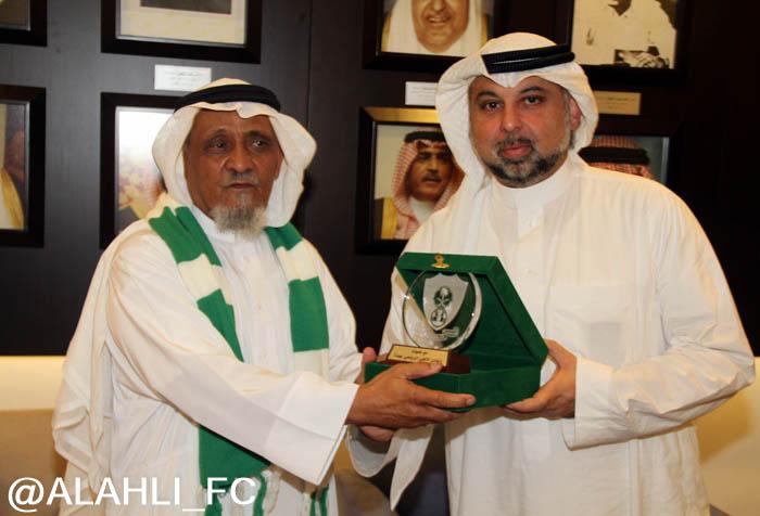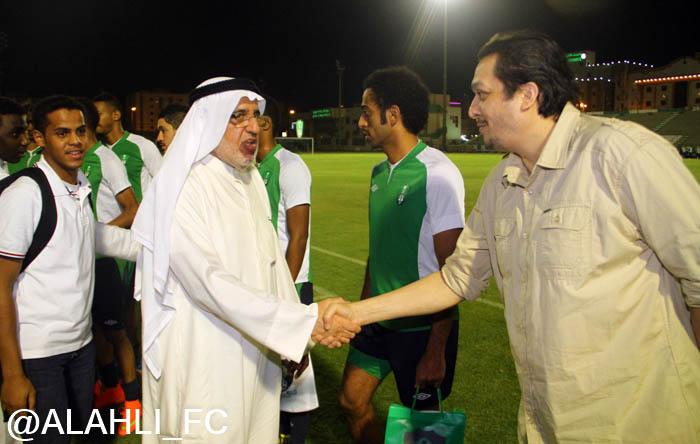 الأستاذ وليد سلطان عضو مجلس الإدارة أمين عام الصندوق والأستاذ محمد الدوسري مدير العلاقات العامة, والأستاذ فاروق سليماني مساعد الأمين العام, حيث أستمع إلى شرح عن تاريخ النادي وبطولاته ورؤساء النادي السابقين, وتم تقديم درع النادي الأهلي هدية من مجلس الإدارة وألتقط الصور التذكارية في قاعة الملكي, ثم بعد ذلك توجه إلى التدريبات وإلتقى بالأجهزة الإدارية والفنية, وصافح لاعبي الفريق.