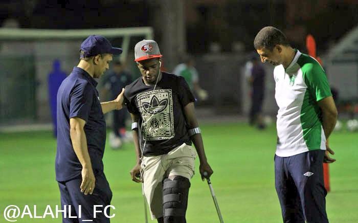 اختتم الفريق الكروي الأول بالنادي الأهلي تحضيراته لملاقاة هجر في الثامنة والربع من مساء غدالاثنين على ملعب مدينة الملك عبدالله الرياضية بجدة ضمن مباريات دور الستة عشر من مسابقة كأس سمو ولي العهد حيث اكتفى الجهاز الفني بقيادة المدرب السويسري جروس ببعض التدريبات الترفيهية الخفيفة في مران اليوم بغية إبعاد اللاعبين عن الإرهاق كشفت الفحوصات الطبية التي أجراها منصور الحربي ظهر اليوم بأكاديمية أسباير عن تعرضه لقطع في الرباط الصليبي للركبة وسيعود اللاعب إلى جدة في الواحدة من صباح غد الاثنين وتقرر أن يجري اللاعب العملية الجراحية في التاسع والعشرين من شهر سبتمبر الجاري بمستشفى سبيتار التابع لأكاديمية أسباير في قطر .