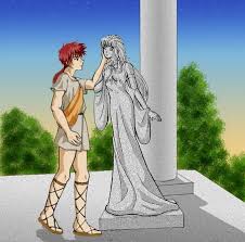 بـجماليون" هوا اسم بطل المسرحية الذائعة الصيت للكاتب والفيلسوف الإيرلندي "جورج برنارد شو" والذي استوحى فكرة هذه المسرحية عام 1912 من أسطورة أغريقية ضاربة في أعماق التاريخ تحكي قصة نحات اغريقي يدعى بجماليون كان كارهاً للنساء يعيش منزوياً ووحيداً، فأراد أن يصنع تمثالاً لما يجب أن تكون عليه المرأة المثالية التي تحيا في مخيلته، فشرع في نحت تمثال بديع الجمال وعندما انتهى من صنع التمثال العاجي بُهر بجماله الذي فاق حُسنَ أي امرأة بالوجود آنذاك واسماه "جلاتيا". ثم ما لبث ان اكتشف انه قد غارق في حب ذلك التمثال-جلاتيا، الذي صنعه بيديه العاريتين، وبدأ يحضر لتمثاله المعبود الهدايا من أثواب وحلي وزينة من تلك الأشياء التي تغري الفتيات، وأفرد للتمثال سرير مريحا ومخدة من ريش وثير. كان يزور هذا التمثال يوميا ليطمئن عليه..يحدثه ويحدوه الأمل بأن تدب في جلاتيا التمثال الروح والحياة فيصير امرأة حقيقية، لما كان يبدو عليه من الكمال والفتنة والروعة والجمال. فأخذ يحرق البخور ويقدم القرابين ويصلي لفينوس (آلهة الحب والجمال وحامية العذارى في الميثولوجيا الأغريقية) لتحول فتاته العاجية جلاتيا إلى روح حية ليتزوجها.