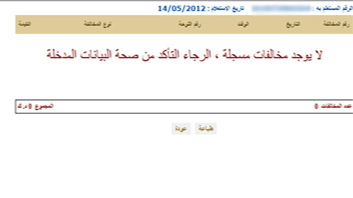 تنبيه أحيانا نتيجة لبضغط عل التطبيق يحتاج التطبيق إلى دقيقة لتحميل المخالفات