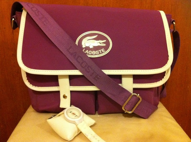 جنطة لاكوسيت رقم 4 اللون البنفسجي مع الساعة