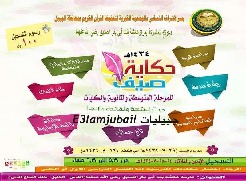 دعوه للفتيات للمشاركه بمركز عائشه بنت أبي بكر الصديق رضي الله ( حكاية صيف ) https://pbs.twimg.com/media/BLV1StqCEAEPcWk.jpg:large