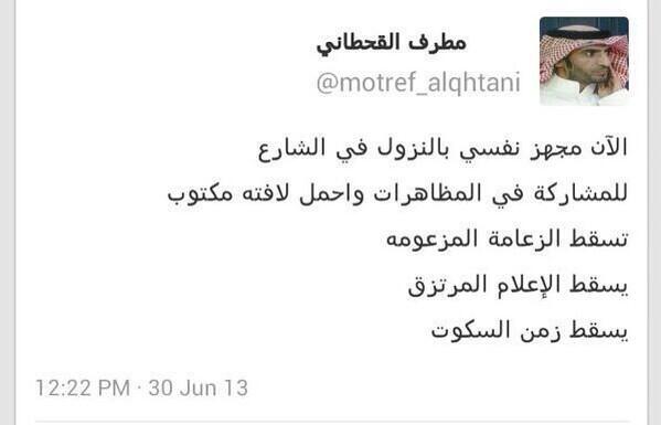 القحطاني كتب عبر حسابه الشخصي على تويتر : " الآن مجهز نفسي بالنزول في الشارع