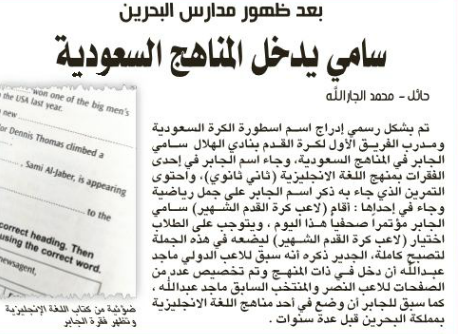 صحيفة الرياضية : سامى يدخل المناهج التعليمية بالمملكة