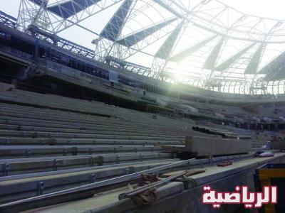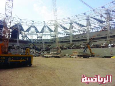 "الرياضية" نجحت في التقاط بعض الصور من داخل الملعب الذي يتسع لـ 63 ألف متفرج.. ومن يشاهد على الطبيعة سرعة واتقان العمل في وقت قياسي يجزم أن ما يحدث أشبه بالمعجزة في تحدي الزمن، فالمشروع العملاق اختصر فيه وقت العمل حرصا من القيادة الرشيدة على إسعاد شباب الوطن وجماهير كرة القدم ..