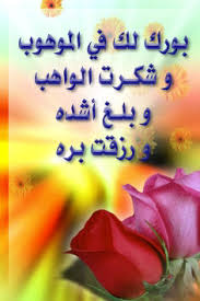 "شكرت الواهب، وبورك لك في الموهوب، وبلغ الله به أشده، ورزقك بره."