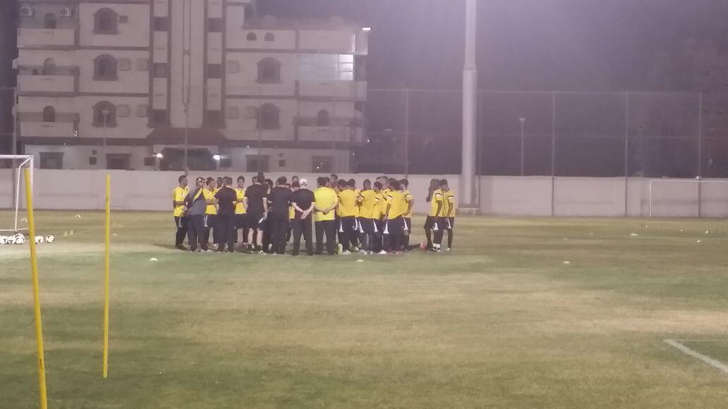 صورة من اجتماع مدرب #الاتحاد خالد القروني مع اللاعبين اﻵن قبل انطلاق التدريب اللياقي الذي سيكون بعد قليل