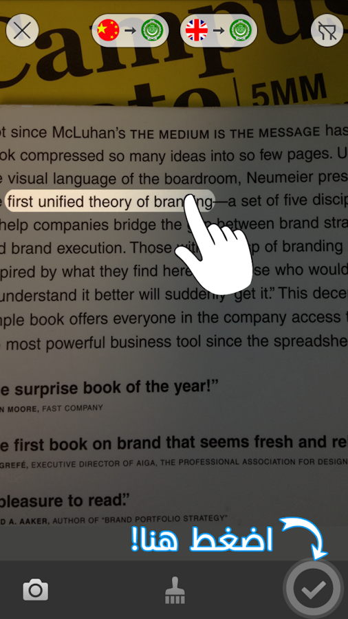 4.ايضا يمكنك استخدام كاميرا جهازك فى تصوير وترجمة الكلمات من الكتاب او اى شىء مكتوب امامك .