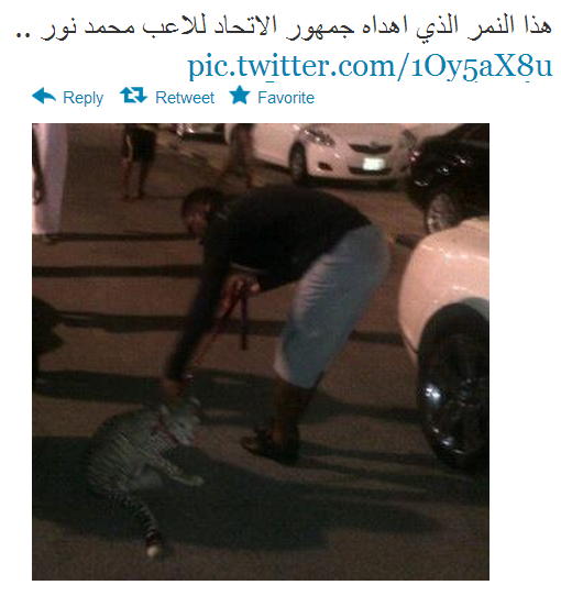 ونور بدوره يفأجى زملائه اللاعبين في التدريب بـ(نمر) حقيقي واللاعبون يرددون : نمرنا يمشي ولايتعب يأكل القاصي مع الداني.