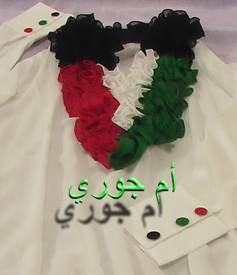 اوفر لكم القميص وهو من قماش الشفون الشفاف والرفلز بالوان العلم الكويتي الغالي مع زراير بالوان العلم عالكم الطويل :eh_s(9):