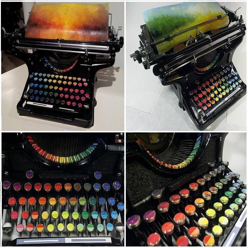 الرسام تيري كالاهان من واشنطن يرسم على آلة كاتبة قديمة حيث بدل الاحرف والمفاتيح إلى ألوان وتسميتها بألة كتابة لرسم