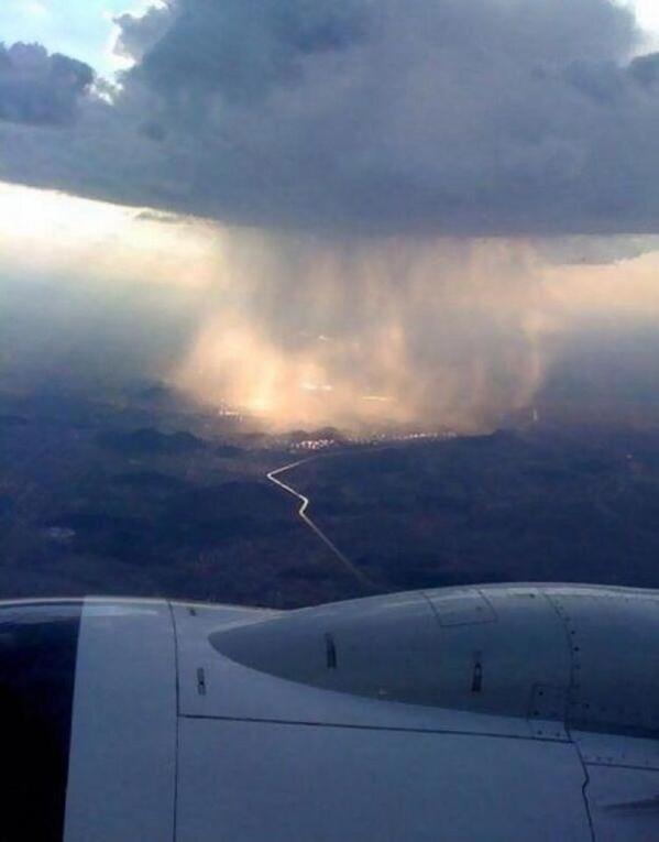 منظر جميل لسحابة تمطر بجانب نافذه الطائرة
