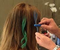 4-بعد اختيار اللون المطلوب قومي بفرش الطبشورعلى الشعر باتجاه واحد من الأعلى لأسفل.