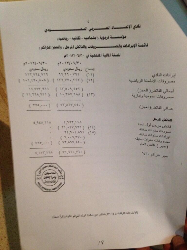 هنالك البعض أظهر صورة لصفحة من القوائم المالية من أجل أن تأخذ طريقة الى المنتديات بهدف المنافحة عن الإدارة في ظل الديون الكبيرة التي ظهرت و تشكل كارثة مالية .