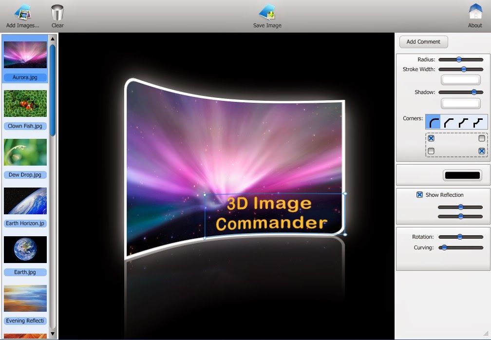 برنامج 3D Image Commander لتحويل الصور الى ثلاثية الابعاد حمل الان أفضل برنامج لتحويل صورك الي صور ثلاثية الابعاد البرنامج حجمة صغير جدا و إمكانياته أكبربكثير برنامج 3D Image Commander 2014 يتيح لك تحويل صورك الى صور ثلاثية الأبعاد مع إضافة أفضل التأثيرات الرائعة ورؤية صورك من منظور ثلاثي الأبعاد , يعمل برنامج 3D Image Commander على إنحناء الصور الى الداخل أو الخارج بدرجات مختلفة إنعكاس توهج ظل تغيير الزوايا للصورة بأشكال مختلفة ورائعة.