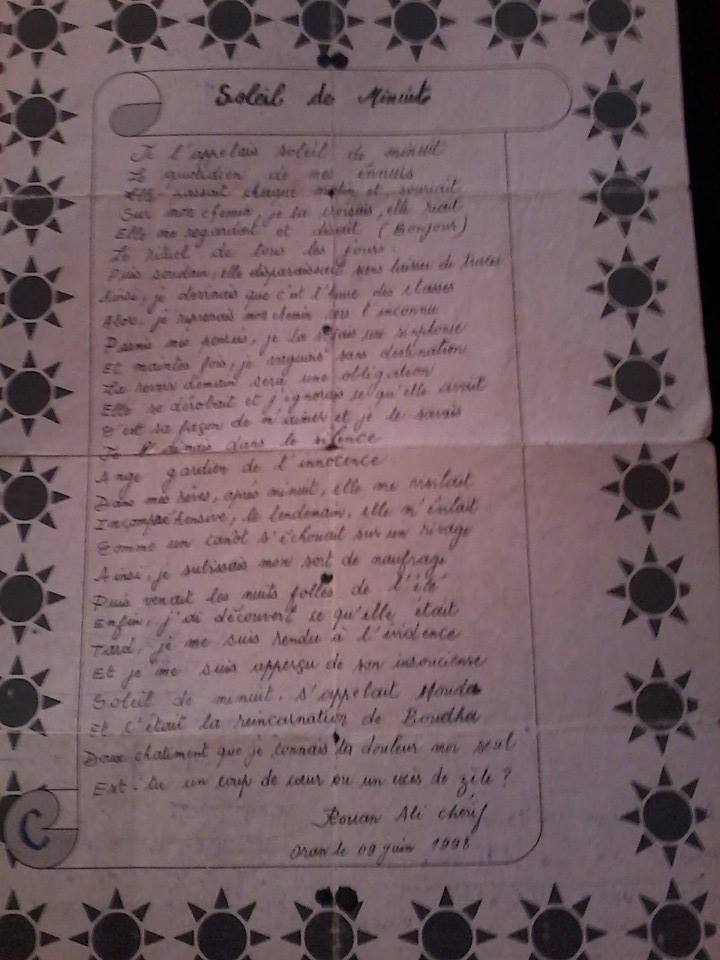 ...أنا لست غريبا بل الغرابة تكمن في المنعرج الذي غير منحى حياتي وجعلني أتقن لغة الاشياء ومن رحلة الصمت ولعبة الموت اخترت العذاب وعلمت أن الأرواح الشفافة تسبح في الخيال صعبة المنال.