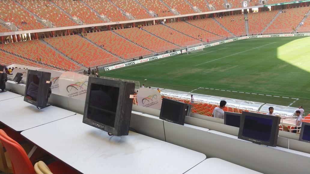 صورة لشاشات خاصة بالﻷعلاميين لمتابعة اللقاء مباشر من مدرجات الملعب .. #الاتحاد و #الفتح