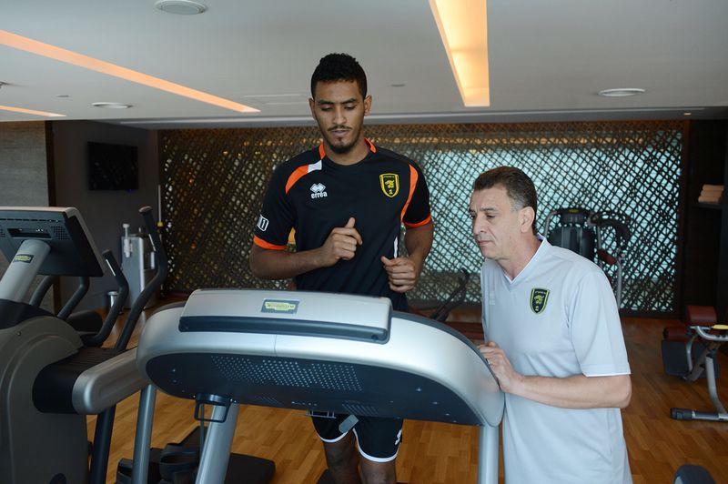 صورة لاعب #الاتحاد (عبدالفتاح عسيري) أثناء أجرائه تدريبات لياقية في صالة اللياقة والحديد بالفندق في #العين صباح اليوم pic.twitter.com/Xhrr8WXkz9