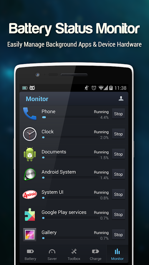 ? Fast Battery Saver—Instantly find and solve battery problems with the ”Optimize” button.