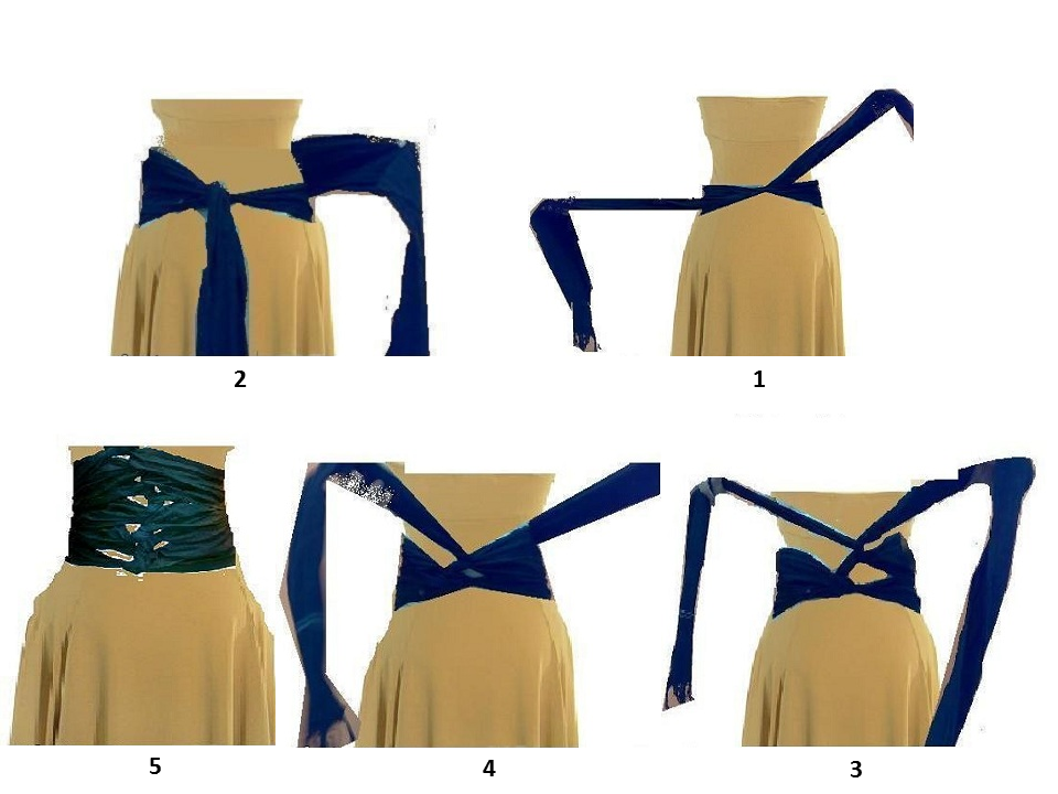 _يلف على الجسم من عظمتي الحوض بشكل دائري إلى ان يصل لأسفل الصدر ويثبت بمشبك كبير بطرفه او مشبكين كبار.