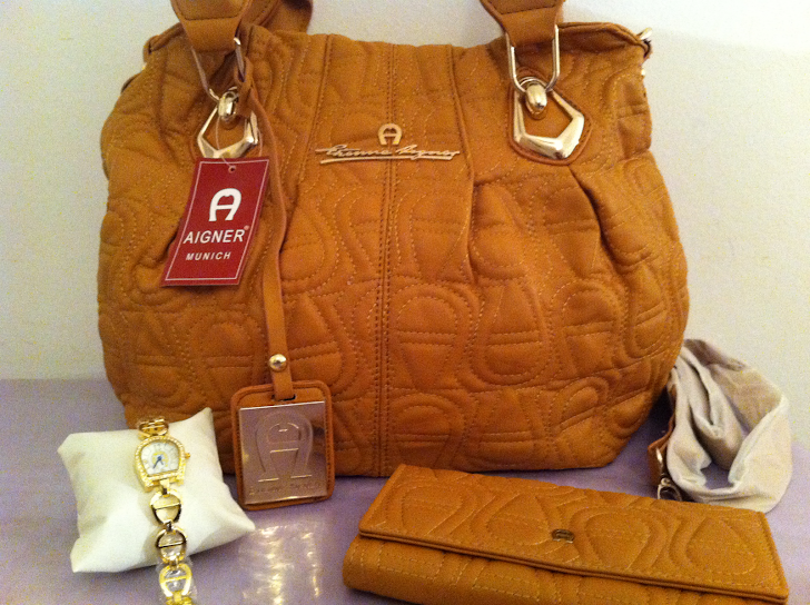 جنطة أجنر رقم 37 مع البوك و الساعة ( اللون بني فاتح )