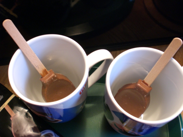 لذة ، متعة ، وطعم لايقوم ، والشتاء غير مع ملاعق الشكولاتة في مشروباتك الساخنة