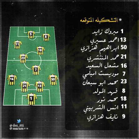 التشكيله المتوقعه