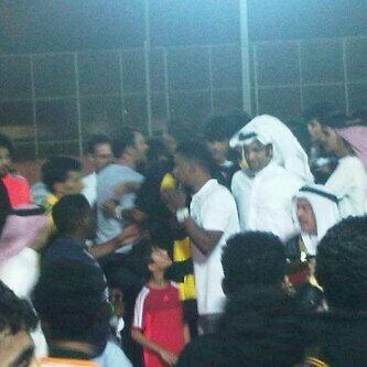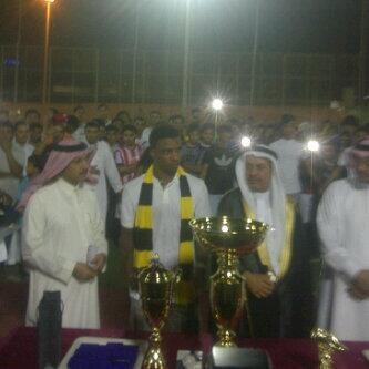 صورة لمحمد نور يقبل شعآر الاتحاد أثناء تسليمه كأس نهآئي دوري بنـي مالك في حي الحرازات بجده ♥♥ !