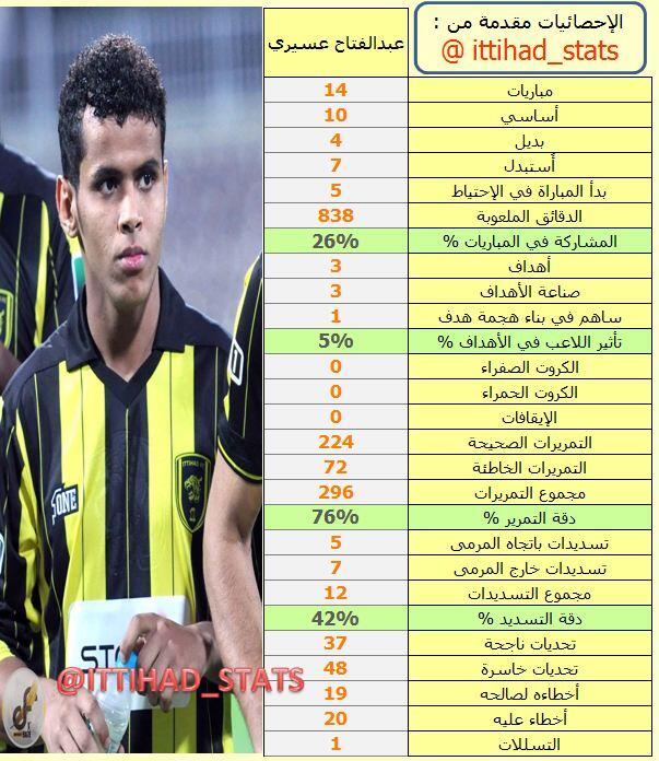 إحصائيات اللاعب ( #عبدالفتاح_عسيري ) مع الإتحاد في الموسم المنصرم