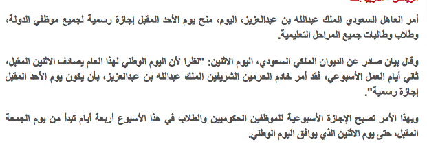 يومي الاحد والاثنين كانا اجازة رسمية بقرار من الملك لليوم الوطني