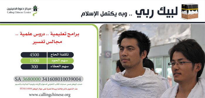 كفالة حج الحجاج الصينيين في مركز دعوة الصينيين التابع للمكتب التعاوني للدعوة والإرشاد وتوعية الجاليات بالنسيم لعام 1434 هـ